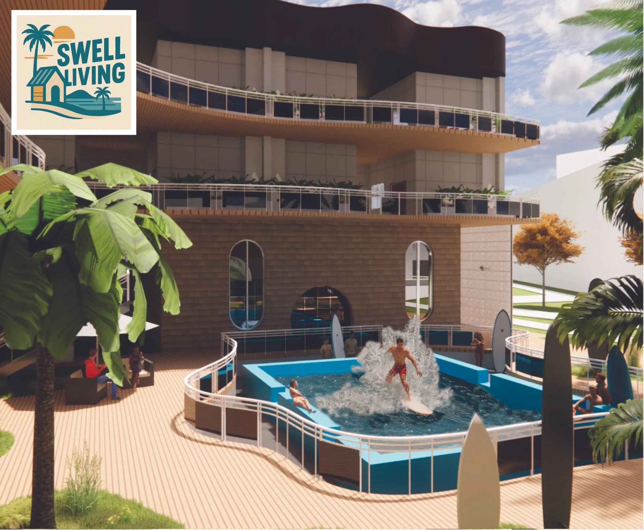 By examining housing as more than shelter, the project proposes that access to meaningful amenities, such as opportunities to learn to surf, can foster well-being, mobility, and connection to place. Situated right next to the Santa Ana train station there is direct access to the beaches of Orange County and San Diego. The housing operates as a gateway to regional landscapes and experiences, reframing affordable housing as an active participant in lifestyle, community, and health.